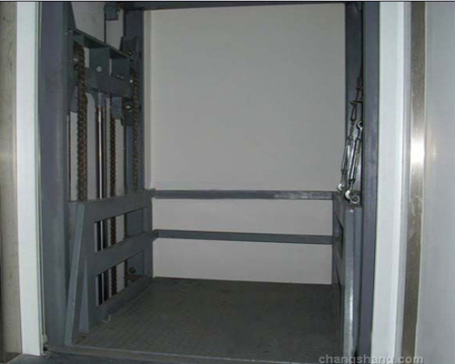 • 液壓式升降貨梯是在兩層之間運(yùn)輸貨物的一種設(shè)備,主要由兩列立柱,臺(tái)面和液壓驅(qū)動(dòng)部件等部分組成。載重可以從200kg到2000kg,臺(tái)面可以做到3米×2米,高度可以做到6米,上升速度為3.5米/分鐘。升降平臺(tái)的上升和下降是通過安裝在導(dǎo)軌里面的液壓油缸來實(shí)現(xiàn)的。液壓油缸是通過安裝在地面旁邊的液壓泵站提供動(dòng)力來驅(qū)動(dòng)的。一般標(biāo)準(zhǔn)的電源為三相380V,單相為220V也可。控制電壓為24V。在每一層都安裝有控制盒及急停按鈕。超行程開關(guān)安裝在頂部,防止設(shè)備超過設(shè)定高度運(yùn)行。防爆閥在油缸底部,防止油管爆裂,平臺(tái)突然下降。如果載重超過額定載重的120%,平臺(tái)將不會(huì)起升。每一層都安裝有和設(shè)備互鎖的門,只有當(dāng)平臺(tái)在那一層,那層的門才能開啟,否則門是打不開的。如果有一扇門沒有關(guān)好,設(shè)備是不會(huì)動(dòng)作的。這樣可以保障人員貨物的安全。
